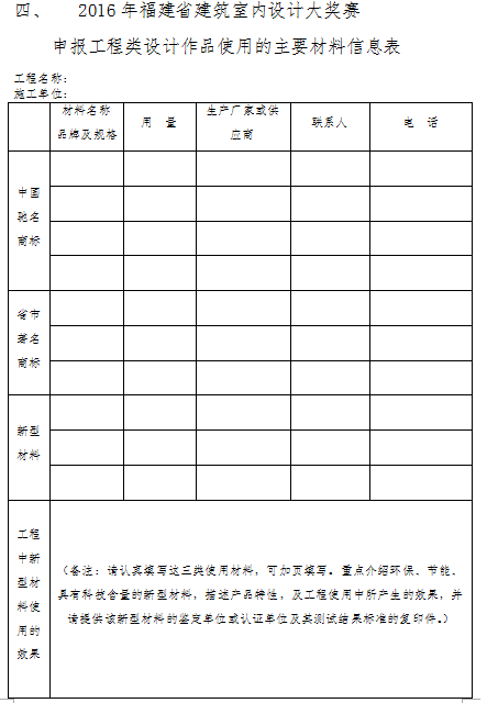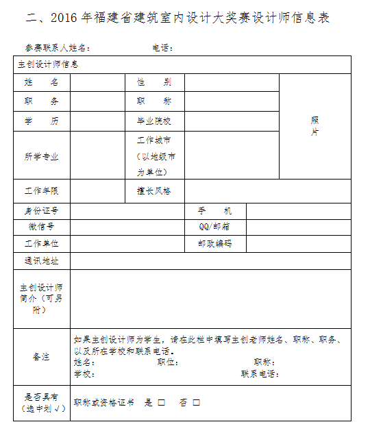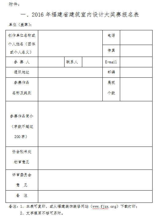 附件:2016年福建省建筑室内设计大奖赛报名表