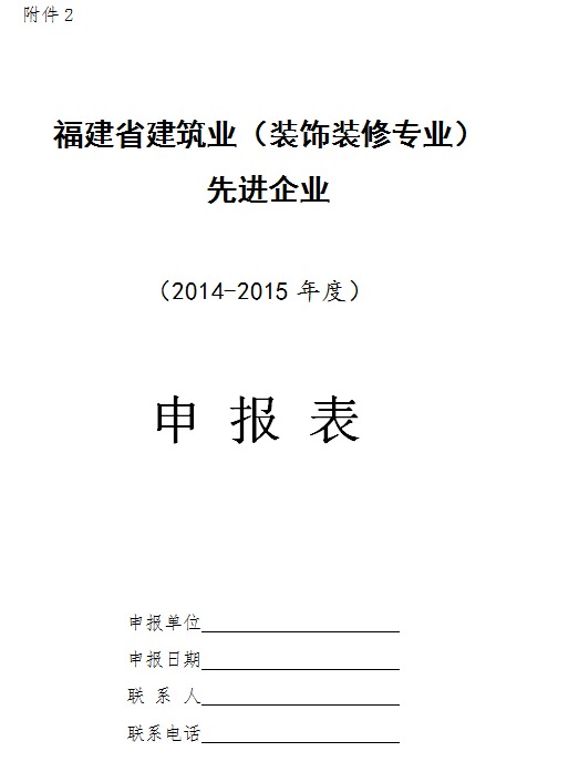 ㈠《2014-2015年度福建省建筑业(装饰装修专业)先进企业申报表》(附件2);
