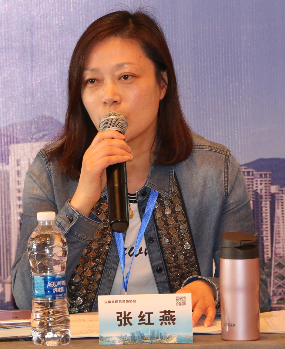 安徽省建筑装饰协会秘书长张红燕强调,行业协会需要发挥平台优势,服务好会员,推动高质量发展。她介绍安徽省装协一年来做好国优装饰奖初评推荐和推行住宅全装修工作,协助主管部门起草行业质量验收标准规范,开展调研,为主管部门出台全流程招投标监督等规划性文件提建议意见。她就协会在脱钩、开展评比表彰活动中遇到的问题寻求解决方案。