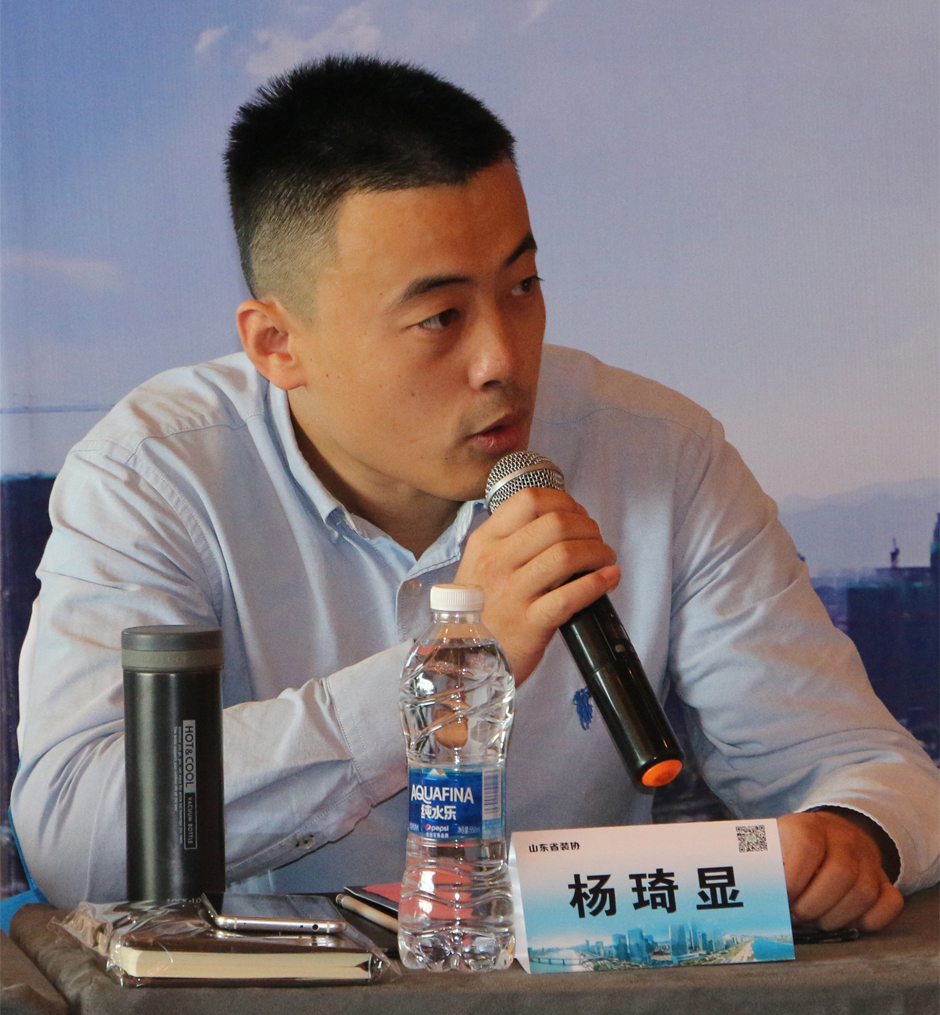 山东省装协代表、青岛市建筑装饰协会秘书长杨琦显分享交流山东省装协近一年来在引导企业搭建信息化,网络化平台,创优争先等活动中取得的成效。