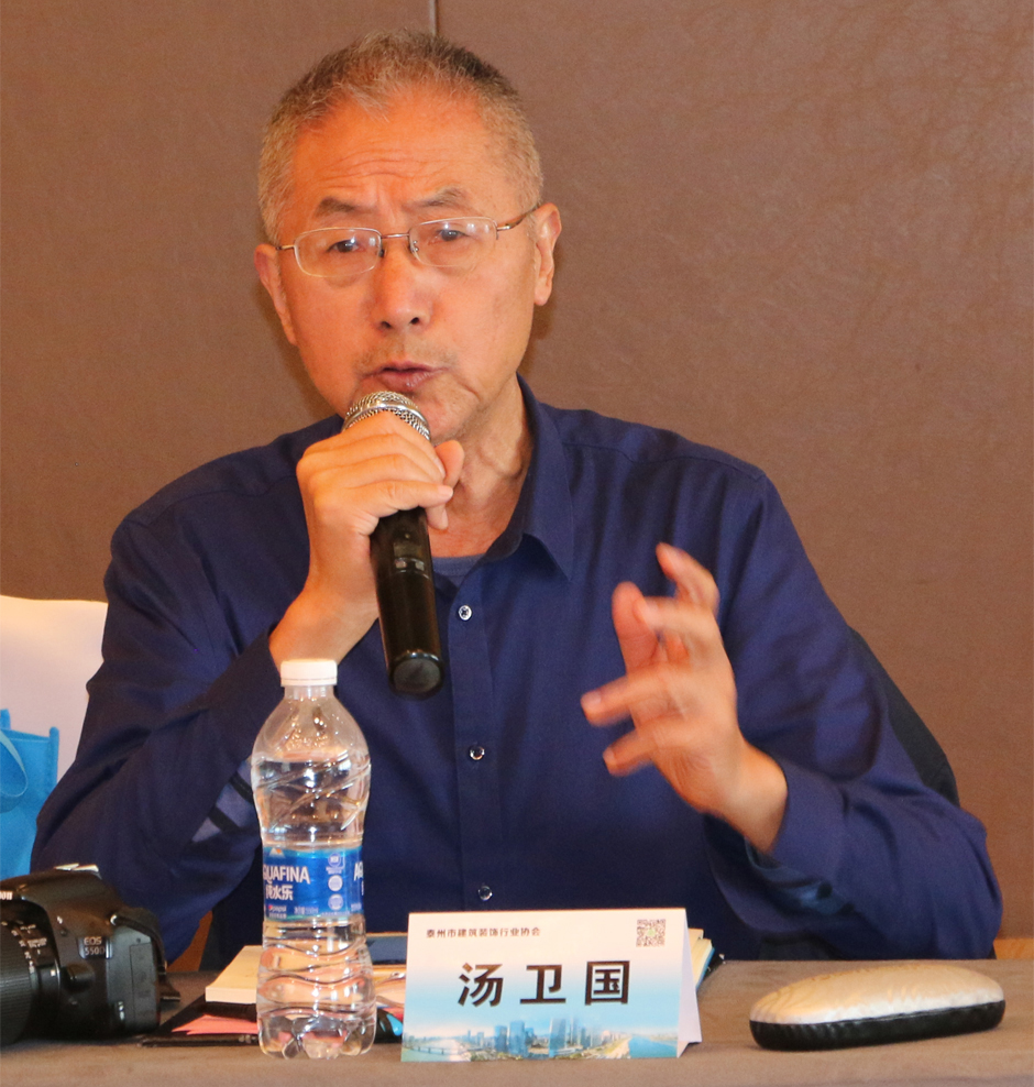 在举手发言环节,泰州市建筑装饰行业协会常务副秘书长汤卫国分享其协会一年来的主要工作,特别指出家装企业跑路的现象,给行业诚信建设提出了更高的要求。