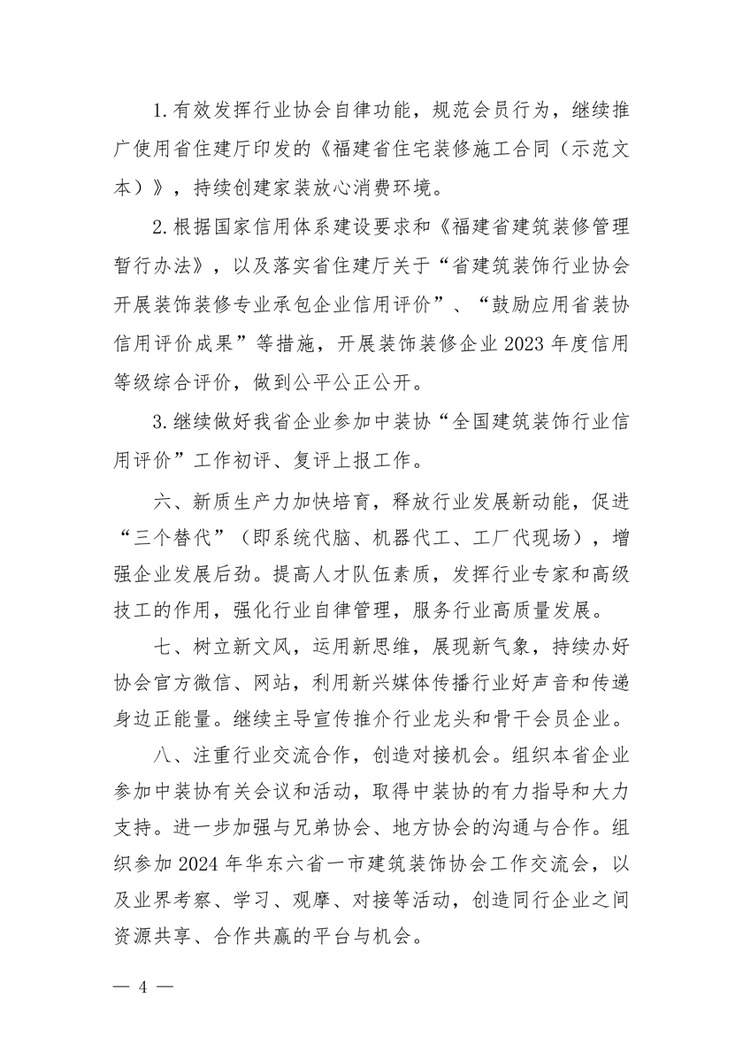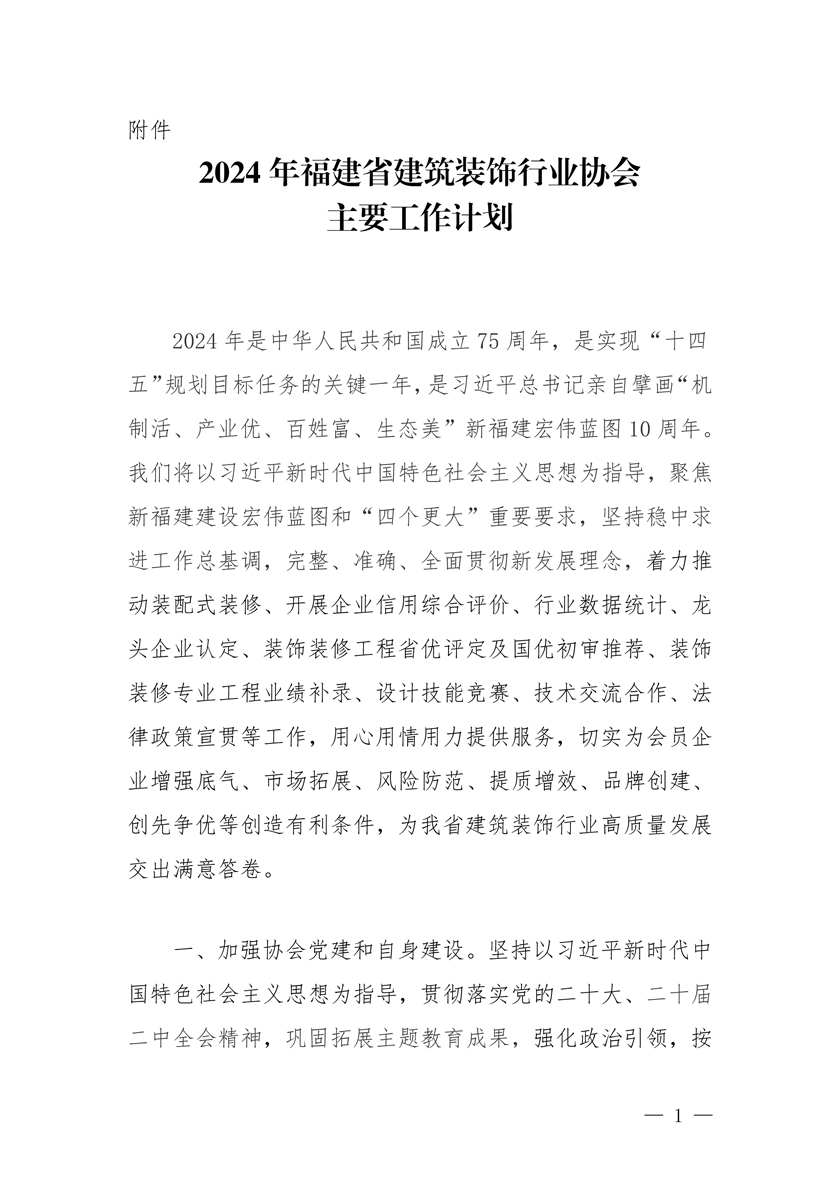 附件:2024年福建省建筑装饰行业协会主要工作计划