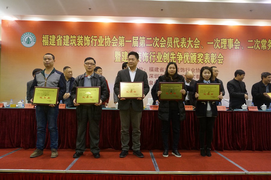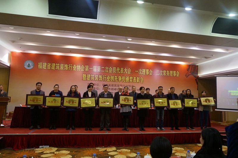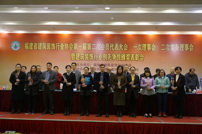 大会对2015年度省建筑业 “一先两优”(装饰装修先进企业、优秀经理、优秀项目经理)、2014年度省“闽江杯”优质工程奖(装饰装修工程)、2016年度省建筑装饰行业示范样板工程奖(第一批)、2016年省建筑室内设计大奖赛(中国国际空间设计大赛福建赛区)、中国十佳家装设计师福建赛区十强及冠、亚、季军进行颁奖,还对“2015-2016”年度中国建筑工程装饰奖获奖的会员单位、“2015-2016”年度中国建筑工程装饰奖福建地区名单和福建省获得2014年度中国建筑装饰行业百强、幕墙行业百强、设计机构五十强企业进行表彰。