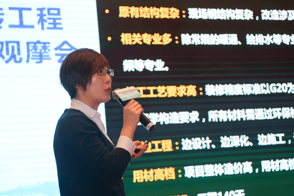 会上,特别邀请了金砖会晤会场改造项目的项目设计与施工单位分享主要成果和宝贵经验。浙江亚厦装饰股份有限公司第七工程管理公司总经理、亚厦厦门金砖项目现场总指挥温鸣飞,浙江亚厦装饰股份有限公司BIM中心应用部总监杜艳静,汉尔姆建筑科技有限公司董事长王晓冬,中建八局第一建设有限公司项目经理柴道琦,北京建筑设计研究院建院装饰公司设计总监张涛等特邀嘉宾分别就本次金砖会晤会场改造项目中的“新、特、难”及专业技术问题做了分享。