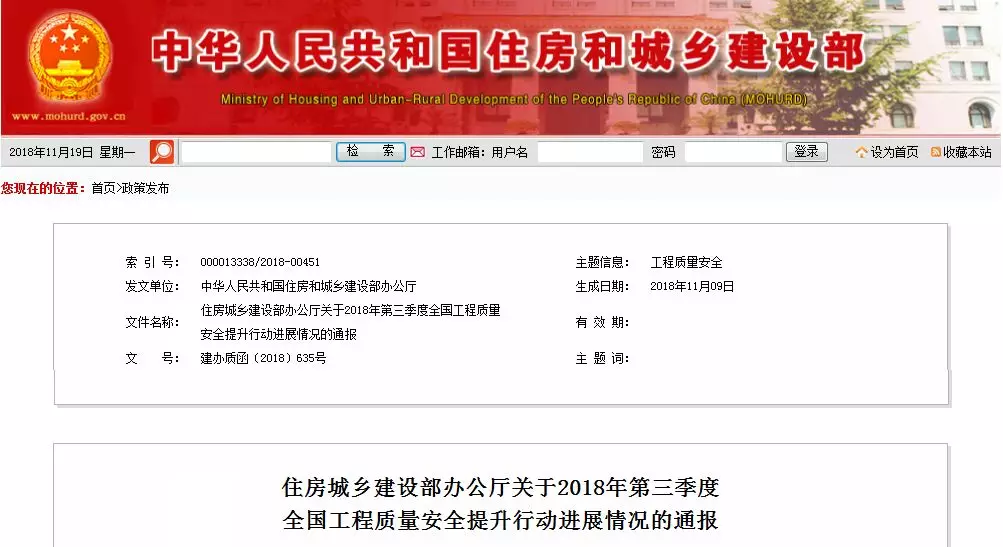 11月14日,住建部通报了2018年第三季度全国工程质量安全提升行动的进展情况,指出各地在开展工程质量安全提升行动中还存在不少问题。值得关注的是,通报中对“工程质量终身责任承诺书签署率”的要求是100%,工程质量终身责任制已进入全面落实阶段。