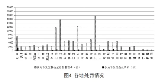 2018年第三季度,各地共下发监督执法检查整改单137479份、行政处罚书7799份,处罚相关单位6460个,处罚相关人员2634名。其中,省级住房城乡建设主管部门下发监督执法检查整改单2768份、行政处罚书889份,处罚相关单位619个,处罚相关人员274名;市县级住房城乡建设主管部门下发监督执法检查整改单134711份、行政处罚书6910份,处罚相关单位5841个,处罚相关人员2360名。从行政处罚数量看,北京市、重庆市、江苏省处罚力度较大。