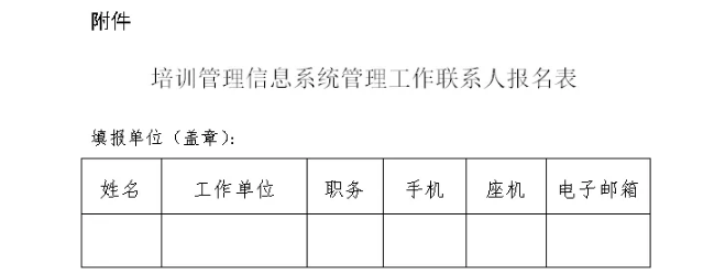 附件:培训管理信息系统管理工作联系人报名表