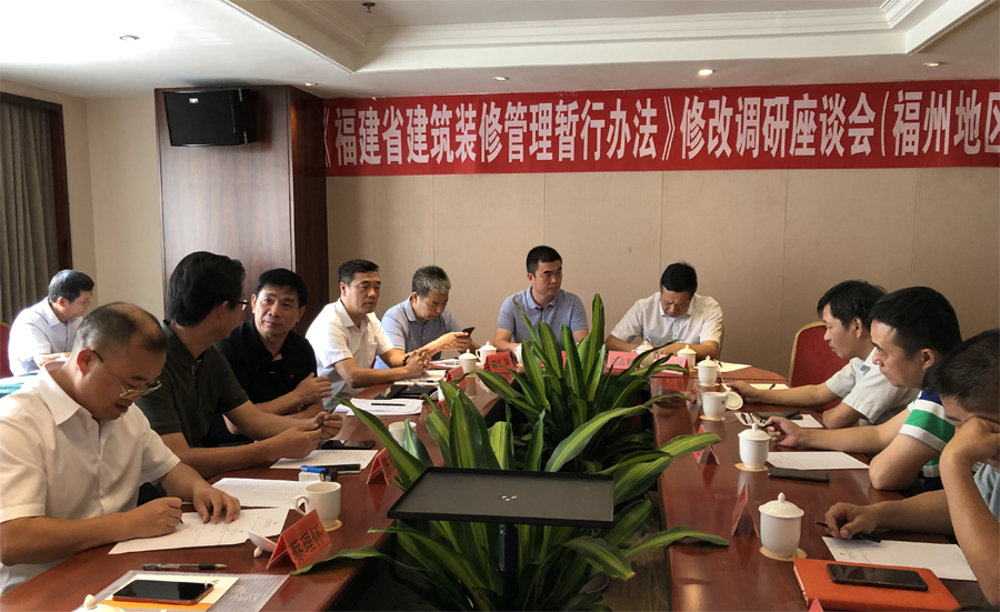 《办法》于今年3月份列入2019年省政府规章修改调研项目。省住建厅要求省装协协助做好《办法》修订工作,针对《办法》实施情况以及我省建筑装修装饰市场存在的突出问题深入开展调研。为此,召开座谈会(首先在福州地区,近期拟安排在厦门、泉州地区接着召开)。