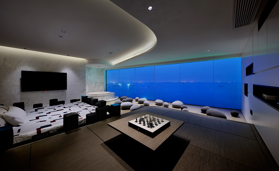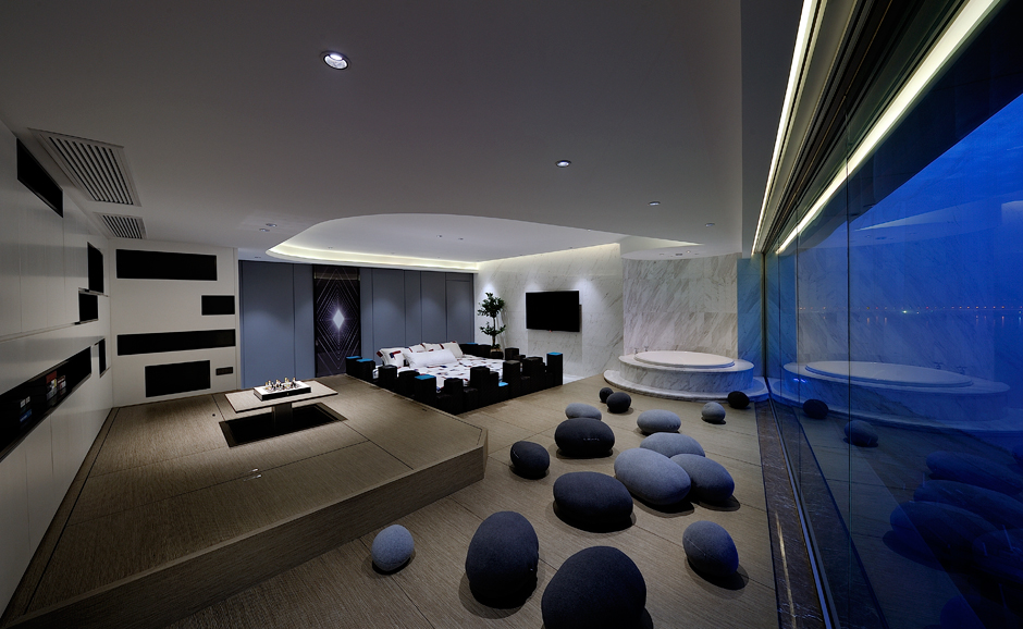 床边散落的卵石,瞬间拉近了大海的距离,站在巨大的全景窗边,仿佛海风拂面,清新、微咸,徜徉其间,灵魂已化作自由的海鸟,在海浪之上,白云之间随风曼舞。