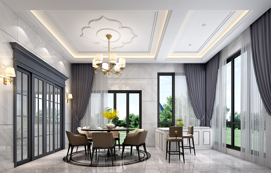 本案设计力求创造宽敞平衡的生活空间,让住宅与环境相融合,使其充满空间感,设计师通过木料与极简风格装饰灯凸显出宽阔的建筑容积,以独特的东方美学,以“五行”为设计基础元素,使奢华生活在上一层高度。