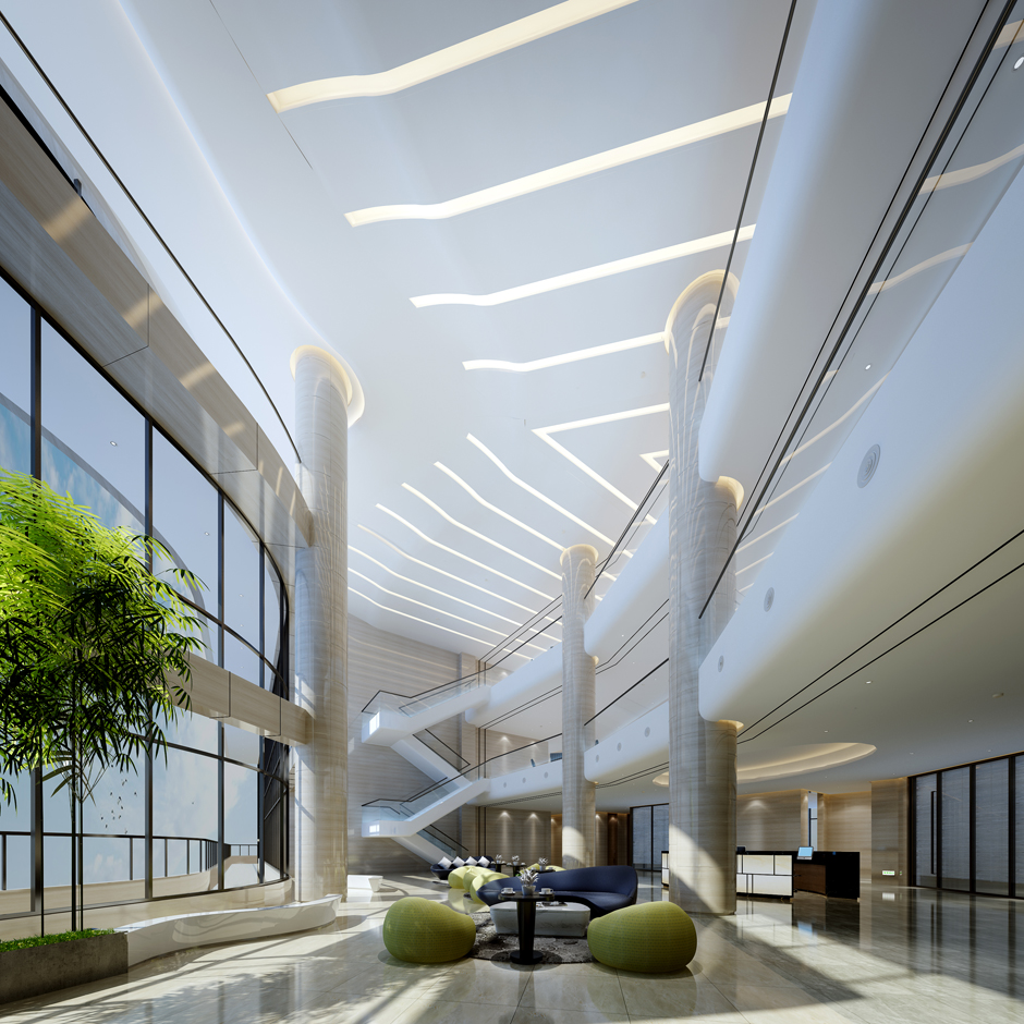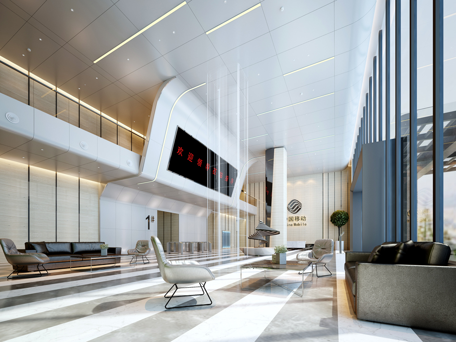 本案设计,主要以清晰、整体、温馨、舒适为主。将移动标志提炼出,运用在设计之中,演变设计在空间的每个区域。设计上使用较明快的色调,将企业标识符号演变成多种造型元素,形成独特的空间语言,在设计中适当运用。线型符号在空间中的使用,通过超常规的美学刺激展示高科技现代化办公独一无二的魅力,给人经久不忘的视觉体验。而此次设计更将生态理念融入设计,室内植物墙、智能化控制等的的设计,令人惊奇。在色彩运用上,把企业的主色调融入空间环境中,使空间更具企业特色,着重体现企业的现代感和文化感。现代简洁的现代手法,将企业标志的弧线,运用在整个空间中。