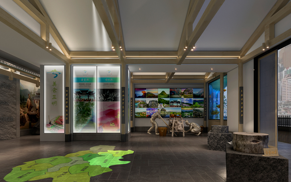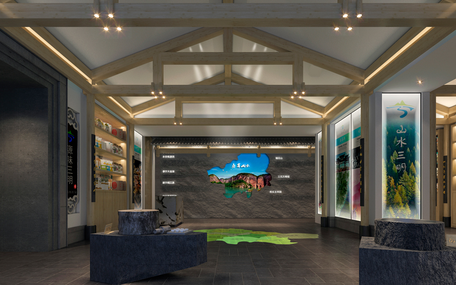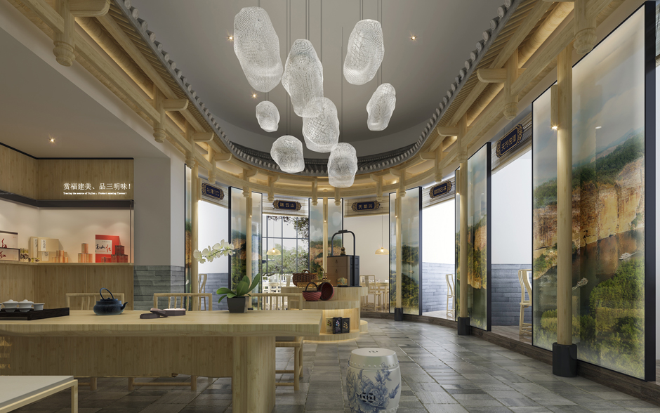 福建省三明大厦-源味三明项目原则与精神为:以此项目为媒介致力推广福建三明的美食,土特产,旅游,三大板块,为三明地区在省会城市的推广窗口。按项目的精神在设计上以三明的安贞堡的民居特点为启迪,以民居建筑文化作为设计的母题,以此延伸至室内的各个空间,创造个地域文化明显的,生态的,绿色的,契合项目精神的空间场所气质。空间具民族文化特征同时是朴素的,自然的,亲民的,符合项目的定位特点及当下民众返璞归真的精神需求。