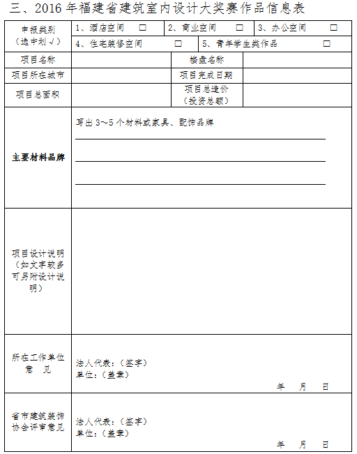 附件:2016年福建省建筑室内设计大奖赛报名表