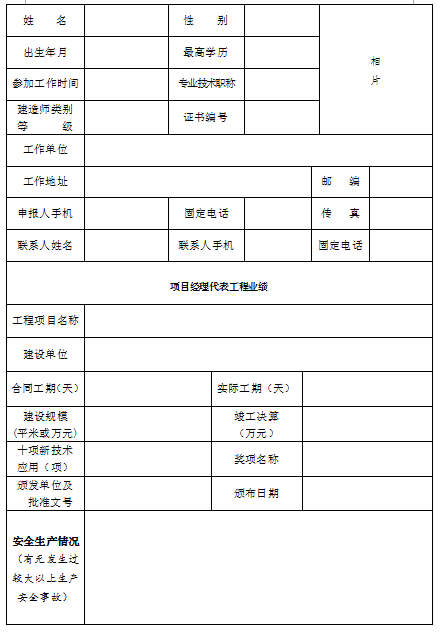 (三)每个项目一般只能申报1名优秀项目经理。获得国家级优质工程可申报2名,其参建单位可申报1名。