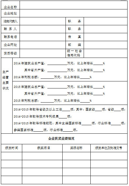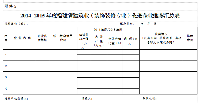 ㈠《2014-2015年度福建省建筑业(装饰装修专业)先进企业申报表》(附件2);