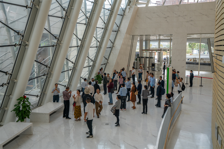 下午福建装协组织与会代表、来宾观摩享有“福州版·悉尼歌剧院”之称的福州市海峡文化艺术中心装修工程,以及富有福州地域特色的古建筑群的福州市三坊七巷古建筑修复装修工程。活动中,观摩人员聆听项目经理和现场解说员讲解,仔细察看、认真抓拍建筑室内装修效果和新技术、新材料、新工艺应用的部件。下午的观摩活动反响较好,得到了大家的好评。