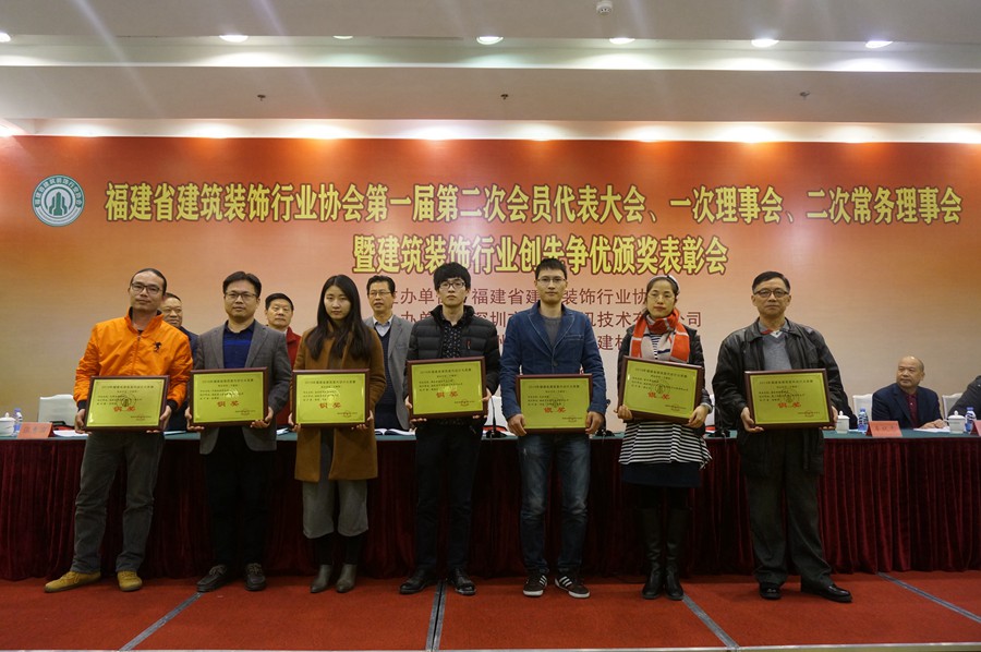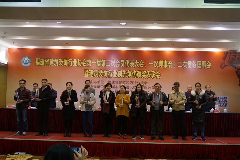 大会对2015年度省建筑业 “一先两优”(装饰装修先进企业、优秀经理、优秀项目经理)、2014年度省“闽江杯”优质工程奖(装饰装修工程)、2016年度省建筑装饰行业示范样板工程奖(第一批)、2016年省建筑室内设计大奖赛(中国国际空间设计大赛福建赛区)、中国十佳家装设计师福建赛区十强及冠、亚、季军进行颁奖,还对“2015-2016”年度中国建筑工程装饰奖获奖的会员单位、“2015-2016”年度中国建筑工程装饰奖福建地区名单和福建省获得2014年度中国建筑装饰行业百强、幕墙行业百强、设计机构五十强企业进行表彰。
