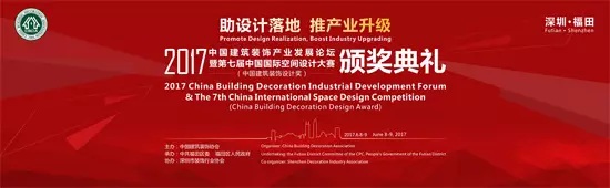 2017年6月8日至9日,由中国建筑装饰协会主办、深圳市福田区委、福田区人民政府承办的“2017中国建筑装饰产业发展论坛暨第七届中国国际空间设计大赛(中国建筑装饰设计奖)颁奖典礼”在深圳五洲宾馆隆重举行。