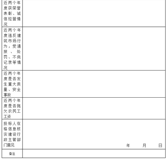 注:本表一式三份,一份信息核实建设行政主管部门,一份交市公共资源交易服务中心,一份投标人留底。