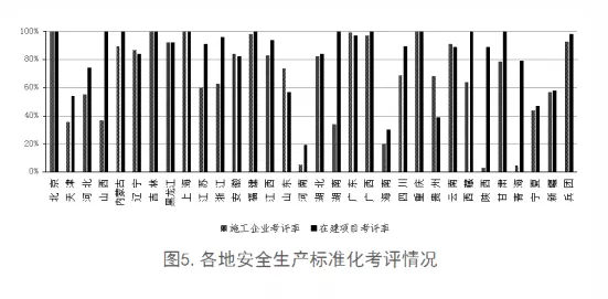 截至2018年第三季度,各地建筑施工企业安全生产标准化考评率平均为67.78%,北京、吉林、上海、重庆、广东、福建、广西等省(区、市)和新疆生产建设兵团考评率较高;在建房屋市政工程项目考评率平均为82.63%,北京、山西、内蒙古、吉林、上海、福建、湖南、广西、重庆、西藏、甘肃等11个省(区、市)考评率达100%。