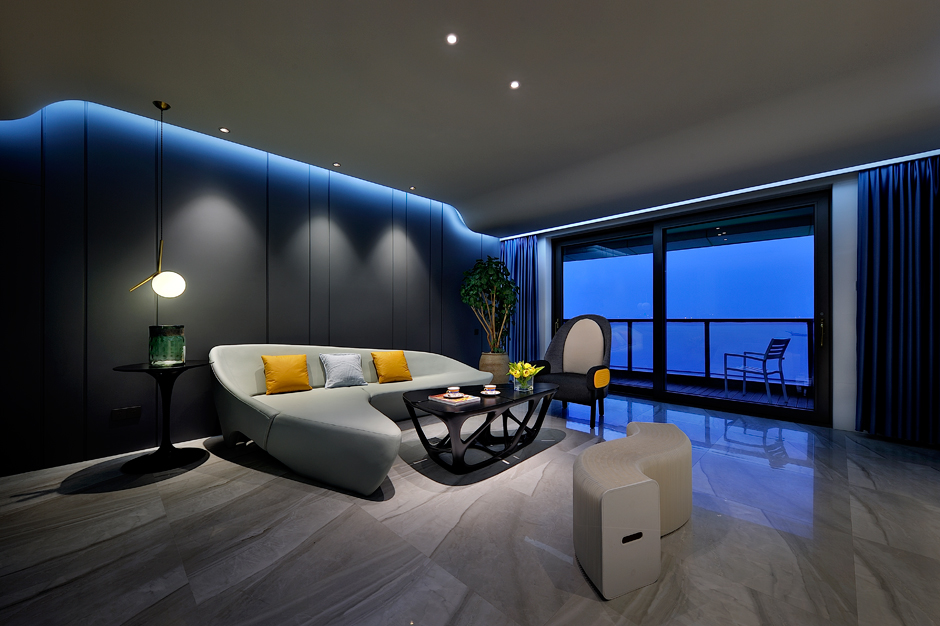 夜幕降临,海变得深邃而神秘,墙上的玻璃通过科技完美的随心所欲的驾驭视野,凭窗而立,看星光渔火,风唱鸟鸣,海浪声声,带来远方的问候,携走听海人的祝福。