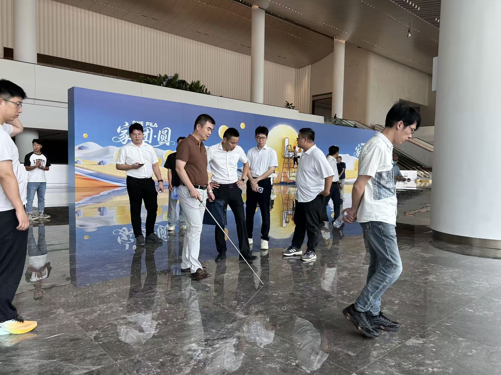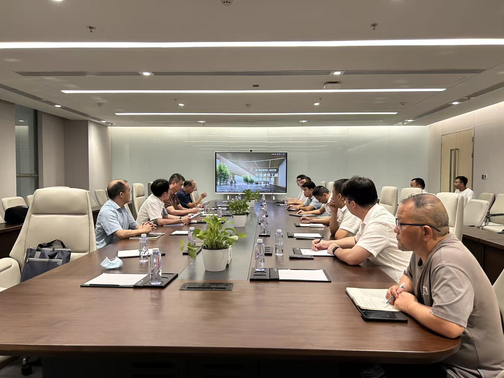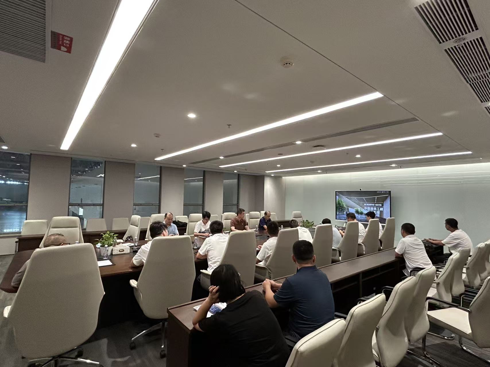 活动期间,专家组首先听取项目部专题汇报,随后深入施工一线,实地考察室内装饰效果、功能厅声光环境及新材料应用等关键环节,并就复杂施工节点与技术人员现场交流,提供针对性指导。