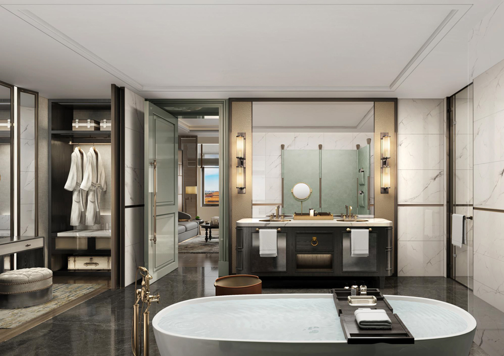 4、客房设计融合情怀:客房设计将归侨情感融入其中,以东意西境的艺术手法,重新塑造老北京官府家具形态的书桌、椅子、屏风等软装。通过巧妙结合光影延展,叠加视觉层次,强化生活与空间共生的艺术想象。
