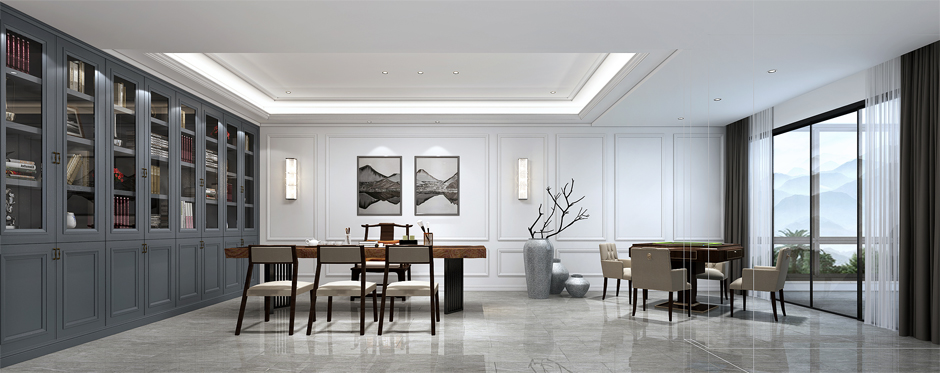 本案设计力求创造宽敞平衡的生活空间,让住宅与环境相融合,使其充满空间感,设计师通过木料与极简风格装饰灯凸显出宽阔的建筑容积,以独特的东方美学,以“五行”为设计基础元素,使奢华生活在上一层高度