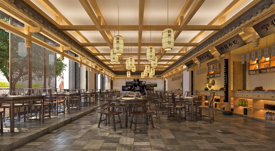 福建省三明大厦-源味三明项目原则与精神为:以此项目为媒介致力推广福建三明的美食,土特产,旅游,三大板块,为三明地区在省会城市的推广窗口。按项目的精神在设计上以三明的安贞堡的民居特点为启迪,以民居建筑文化作为设计的母题,以此延伸至室内的各个空间,创造个地域文化明显的,生态的,绿色的,契合项目精神的空间场所气质。空间具民族文化特征同时是朴素的,自然的,亲民的,符合项目的定位特点及当下民众返璞归真的精神需求。