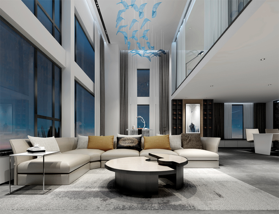 入口通过借景意境,使室内视觉空间最大化;进入公共区域,利用简洁的线条,明朗的块面,素雅色彩的融合,完美达成此雅致空间。五缘繁华新区,无敌揽海,目视片片帆影,耳听风声海涛,去繁从简,闲庭信步,惬美快意,此乐何极!