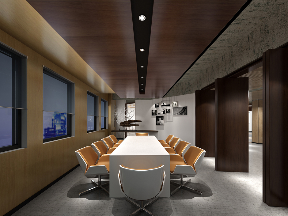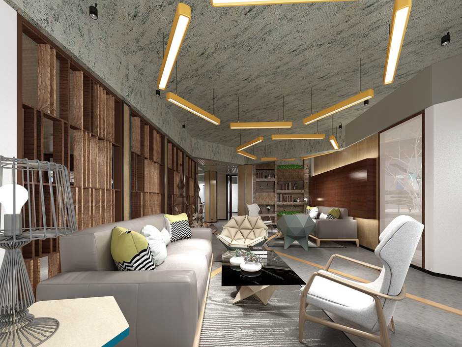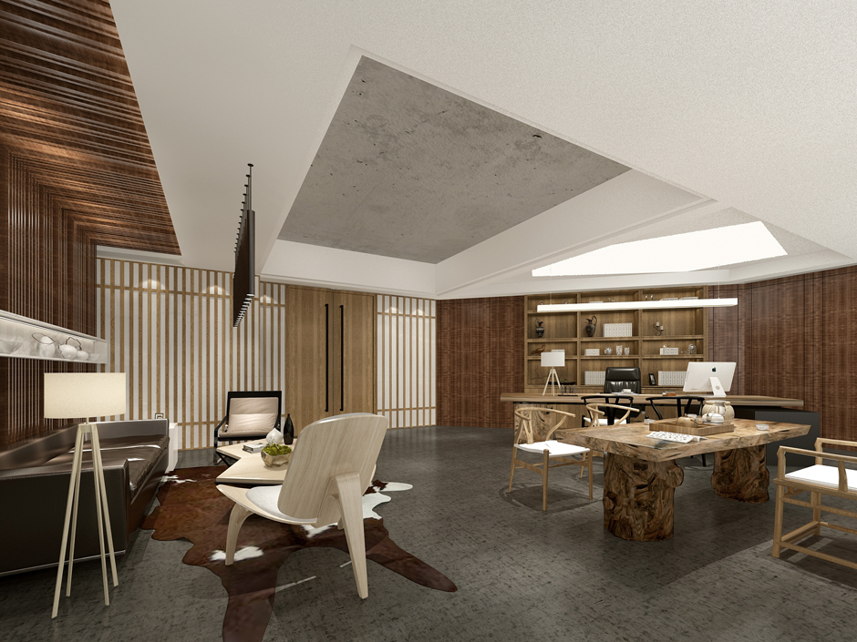 本案项目企业为生态板贸易公司,办公空间带一定的展示功能。项目地原为厂房,空间四平八稳,且层高偏底,柱网又集中在中部区。于带有展示功能的办公空间来说缺少必要的动线及展示性;于办公空间又显得呆板。根据空间需求,设计采用45度切隔方式将空间重新分隔。让原有空间满足功能需求之外又显得生动。
