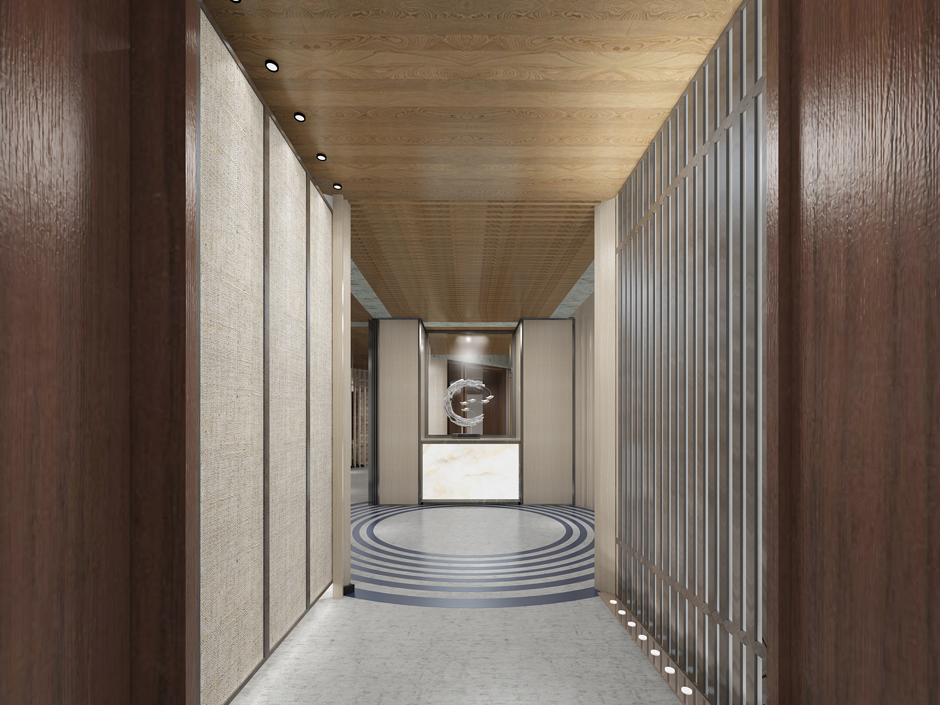 空间内需要大量使用不同样式生态板,如果让空间不显得单调且庒抑也是本案设计的另一难点。设计将不同颜色的生态板用于不同层面,并采用钨钢替代PVC收口条,让生态板即时尚又显高雅。其他墙面则采用肌理漆来衬托。